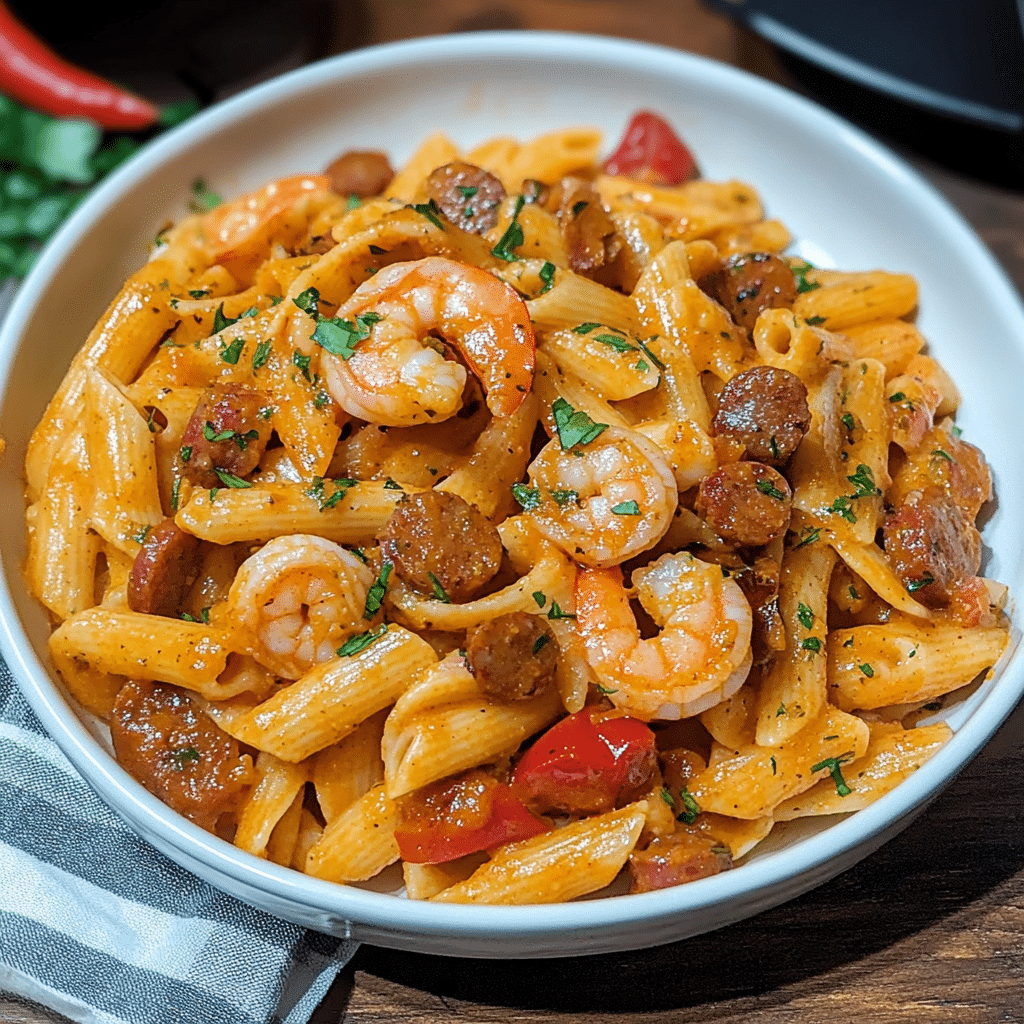 One of my favorite aspects of this dish is how easily it comes together. Despite its rich flavors, the recipe doesn’t require hours of preparation—making it an ideal meal for busy evenings when you want something impressive yet simple. I remember the first time I made it for a dinner party; it quickly became the star of the table. The combination of creamy sauce and Cajun seasoning creates a delightful contrast with the crisp shrimp and sausage.