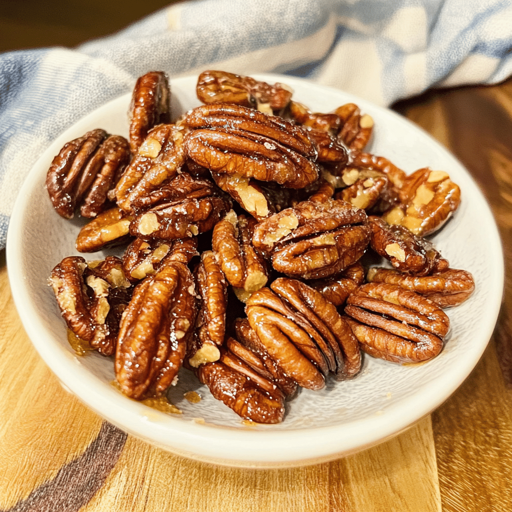Candied Pecans with Maple Syrup are a deliciously sweet and crunchy treat that perfectly captures the essence of cozy, comforting flavors. With their rich coating of maple syrup and a dash of cinnamon, these pecans bring a wonderful balance of sweetness and spice, making them a perfect snack or topping for salads, oatmeal, or desserts. Their crispy exterior and caramelized flavor pair wonderfully with the natural nutty richness of pecans, creating a savory-sweet experience that’s completely irresistible.