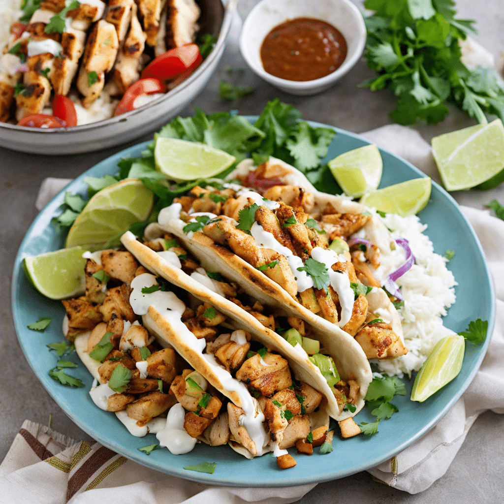 - Serve: Spread a generous amount of garlic sauce on each pita. Add sliced chicken, cucumbers, tomatoes, and onions. Roll the pita to enclose the filling and enjoy!