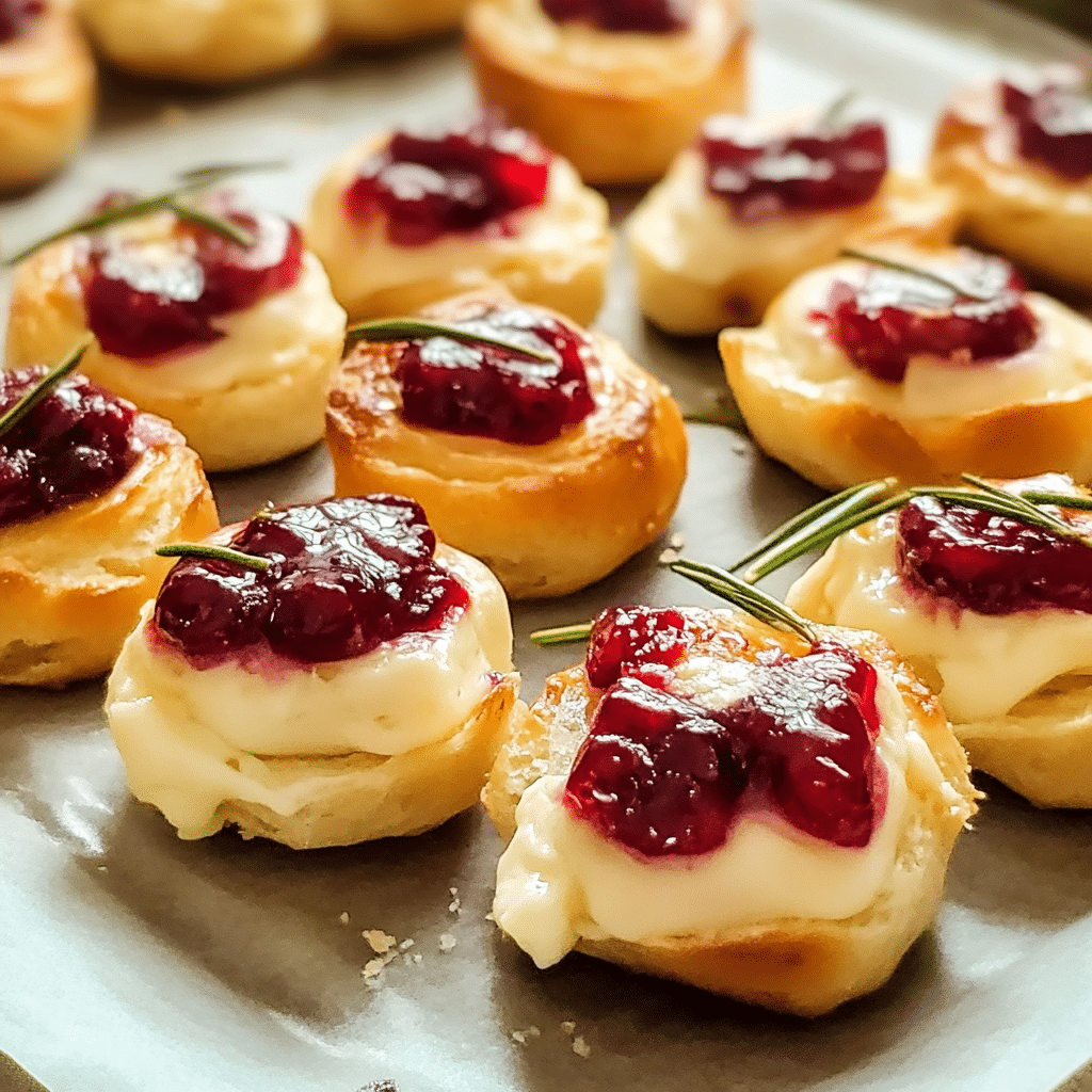 I prepare this dish, and the puff pastry crisps up beautifully in the oven, filling the kitchen with a warm, buttery aroma. As the Brie melts into creamy perfection, the cranberry sauce adds a vibrant, tangy contrast. I carefully assemble each bite, ensuring the flavors meld just right. Watching them bake to golden perfection is incredibly satisfying. When they come out, their irresistible appearance and rich taste make them an instant favorite.