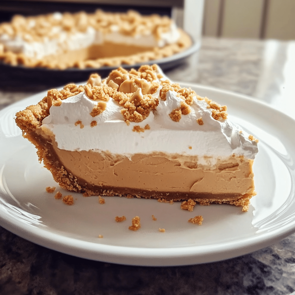 I make this pie, and the aroma of peanut butter fills the kitchen, instantly creating a comforting atmosphere. The creamy filling comes together effortlessly, blending into a perfectly smooth consistency. I pour it into the crust, letting it chill until it sets to perfection. With each slice, the pie holds its shape beautifully, inviting everyone to take a bite.