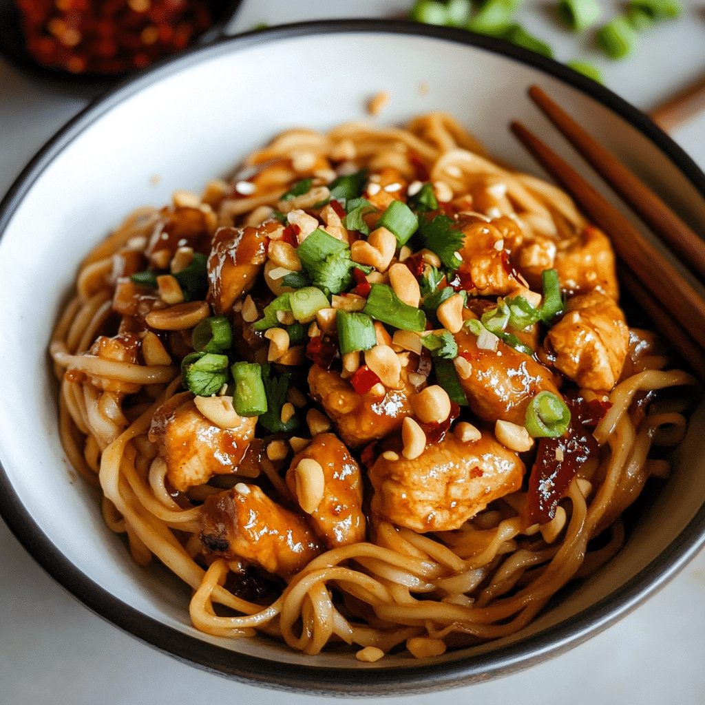What stands out most in this recipe is the dynamic combination of textures and flavors. The juicy chicken, vibrant bell peppers, and earthy peanuts harmonize beautifully, while the glossy sauce, with its hints of soy, garlic, ginger, and chili, coats every strand of noodle to perfection. I recall making this dish for the first time as a weekend dinner experiment—it quickly became a household favorite! The spiciness, balanced by the subtle sweetness and umami of the sauce, creates a taste that’s truly unforgettable.
