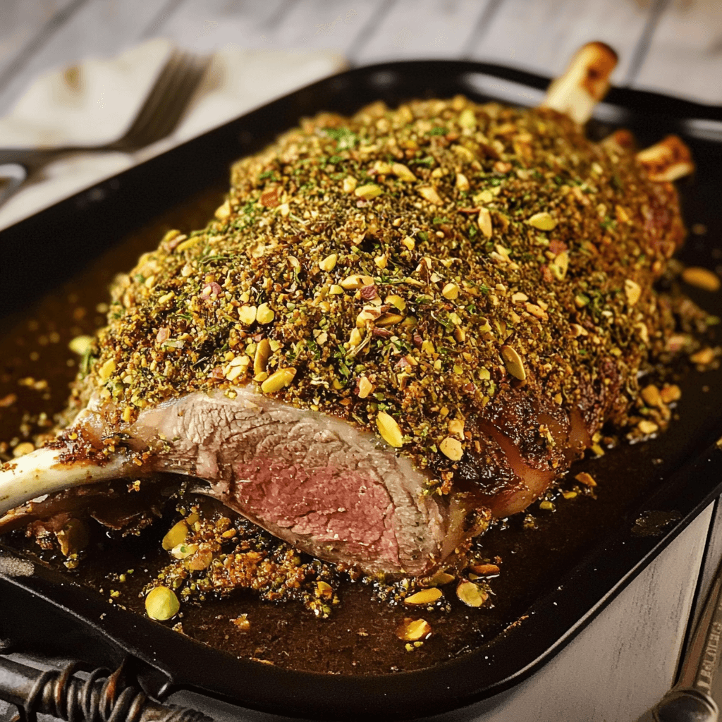 Pistachio & Herb Crusted Leg of Lamb is an elegant and flavorful dish, perfect for special occasions or a refined dinner at home. A tender leg of lamb is coated in a fragrant blend of crushed pistachios and fresh herbs, creating a deliciously crisp crust that enhances the meat’s natural richness. Roasted to perfection, this dish impresses with its balance of textures and flavors, making it a centerpiece-worthy meal.