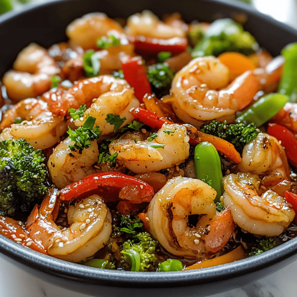 Whip up a Shrimp Stir-Fry and savor a flavorful dish full of fresh, colorful vegetables and succulent shrimp. This quick and easy meal is perfect for a weeknight dinner, offering a balance of taste, nutrition, and vibrant textures. The combination of tender shrimp and crisp veggies tossed in a savory sauce makes it a deliciously satisfying option for any time of the day.